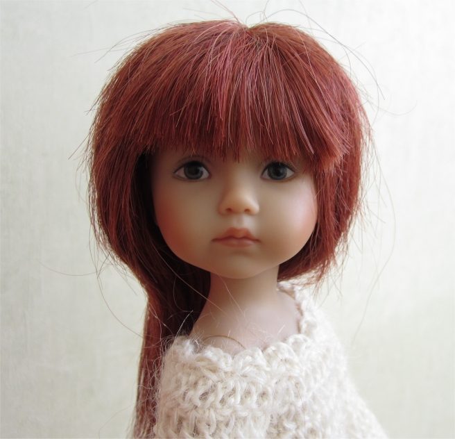 Hannah porte le legging de sa tenue d'origine et des chaussures crèmes trouvées chez Poumi. La tunique est réalisée au crochet avec de la laine fine offerte par Annie , il s'agit d'une adaptation du modèle réalisé pour Camille, dont voici les explications :